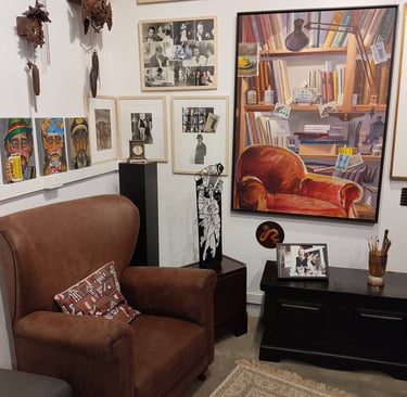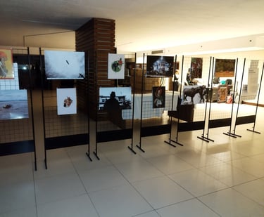 Também faço Expografia, iluminação, ambientação, curadoria, adesivagem, instalações e desenvolvo suportes ou maneiras de expor em qualquer ambiente.